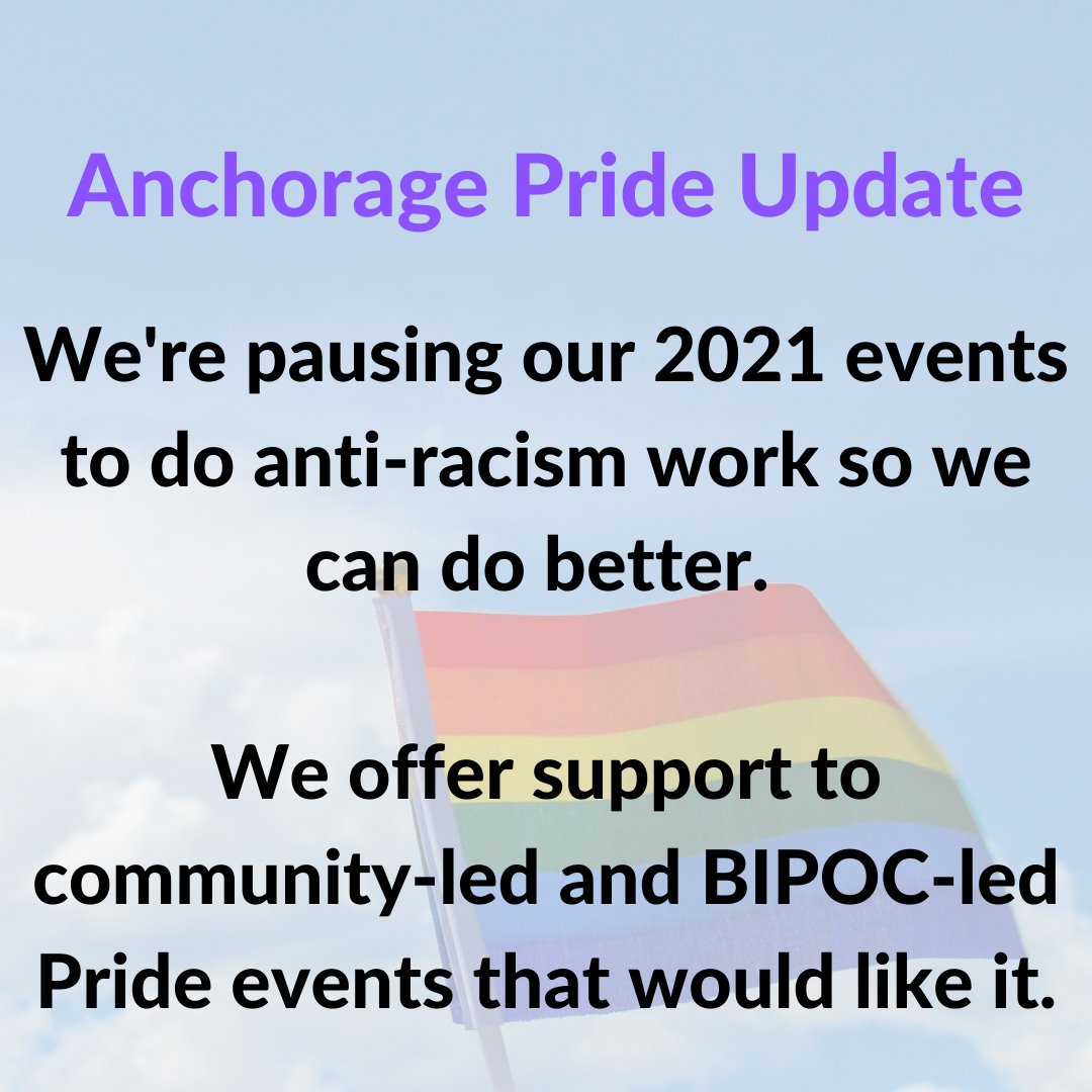 "We are in the process of evaluating our events, processes, and structures to address systemic racism in our organization and to ensure we are honoring and validating Alaska's diverse LGBTQ+ communities and people."