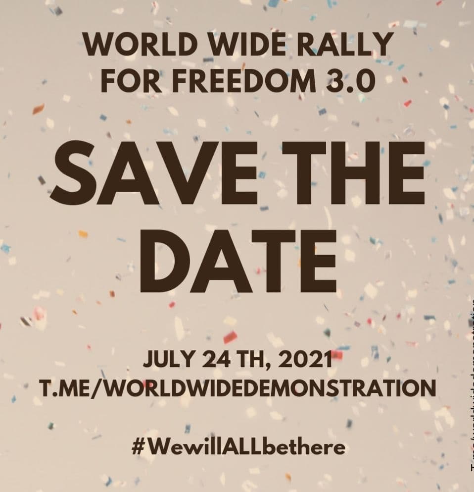 Another Telegram group is looking for Alaska organizers ahead of what is being called a Worldwide Rally for Freedom 3.0 event slated to be held at various locations around the world on July 24, 2021.