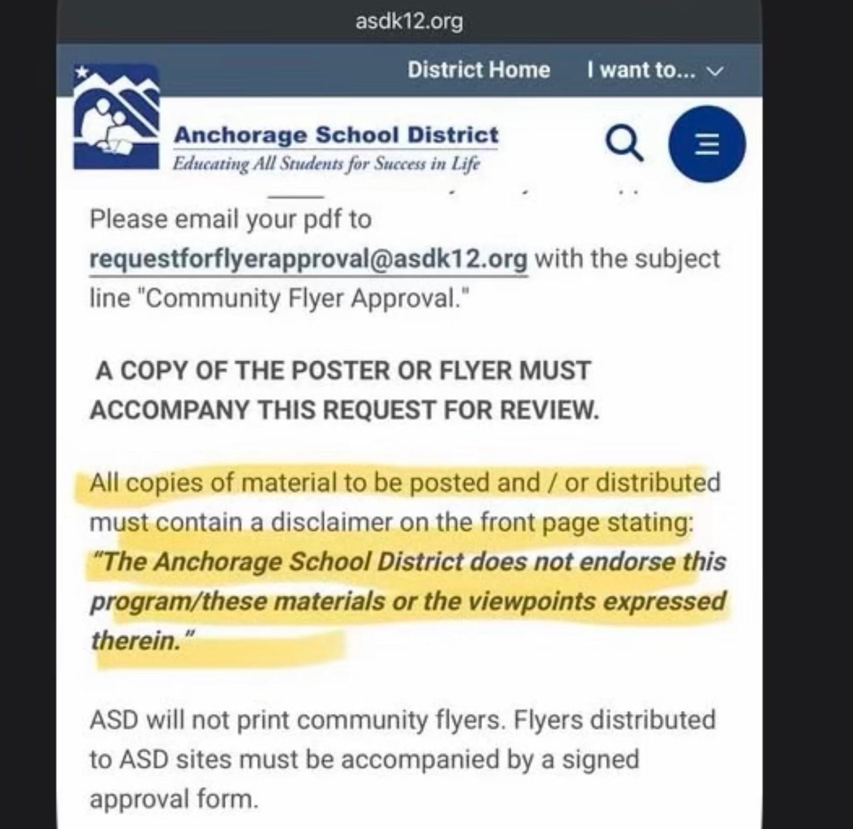 After researching over the weekend, I learned that school districts across the country, including ASD, use disclaimers on materials provided by outside organizations or individuals to make clear that the district is not endorsing the viewpoint or messaging of those materials, which in this case came from a Christian college. This practice is fairly standard nationwide and is rooted in long-standing policies designed to protect instructional neutrality, avoid First Amendment entanglements, and ensure that families understand when something is not part of the district-developed curriculum or materials.