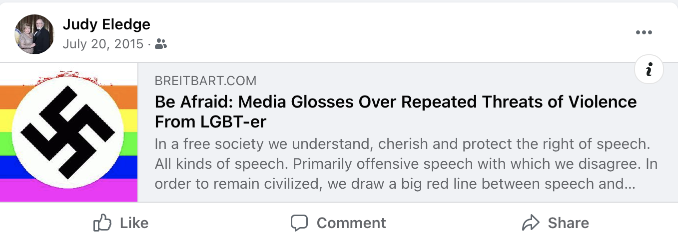 Eledge has an established and troubling history of publishing social media posts that link gay and transgender individuals to pedophilia and has criticized Muslims, Alaska Natives, and the BIPOC community.