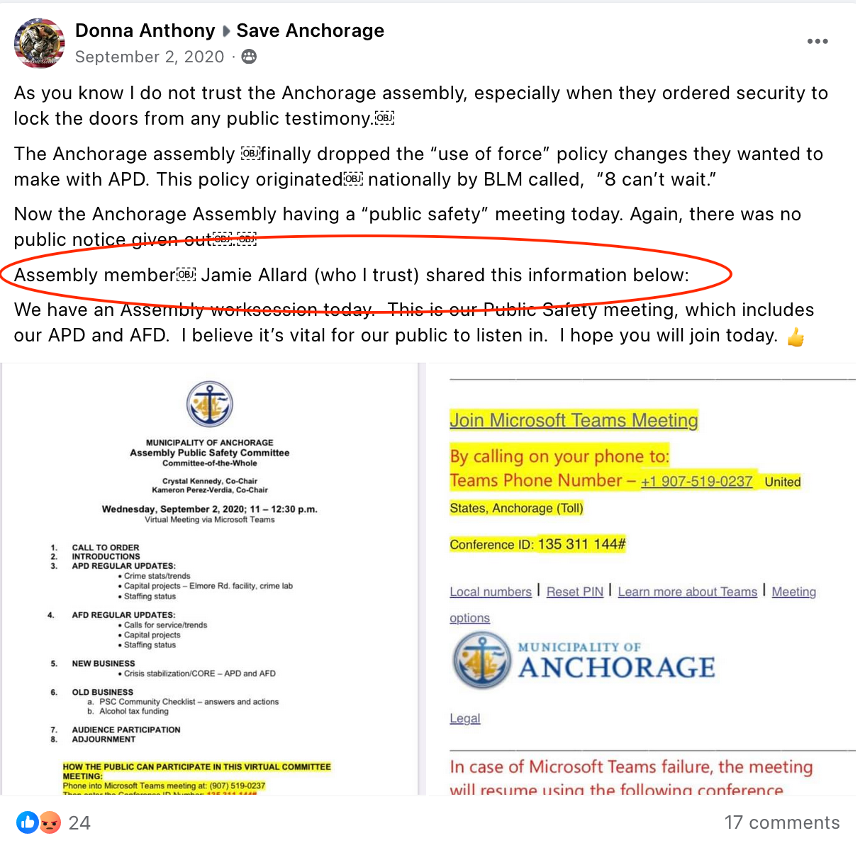 In 2020, Anthony had joined the tirade of right-wing insanity directed at the Anchorage Assembly, writing that she did not trust them, suggesting that the use of force policy changes they proposed the Anchorage Police Department adopt was questionable, as the proposed policy derived from Black Lives Matter.
