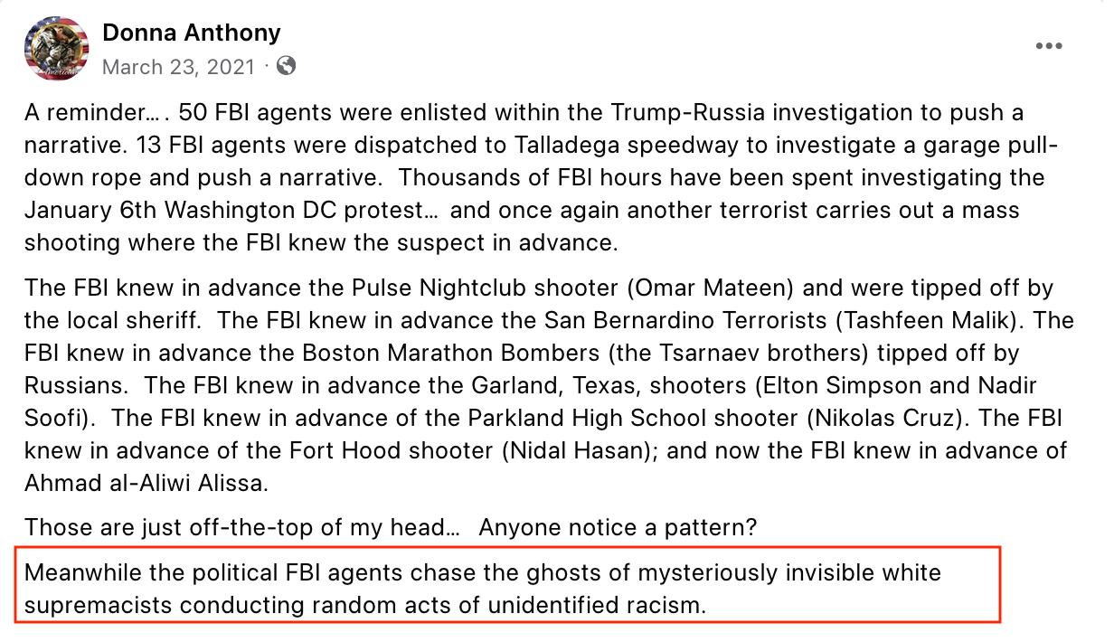 In 2021, Anthony interviewed John Guandolo on her Point Blank USA Podcast/YouTube channel. The subject? 'Who was behind Black Lives Matter and...wait for it, Antifa.' Guandolo, a discredited former FBI employee, has made a name and career out of his fearmongering about American Muslims by hosting “trainings” for law enforcement.