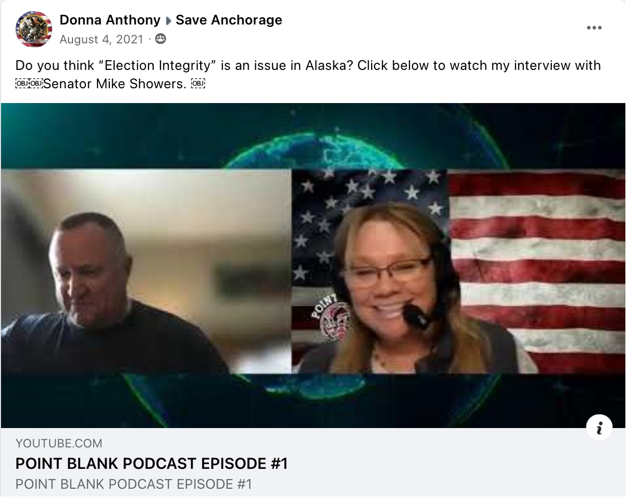 The following year, Anthony interviewed state Senator Mike Shower about whether election integrity should be a concern to Alaskans. Yes, election integrity is important, but let's not take Sen. Shower's right-wing fearmongering about the issue seriously.
