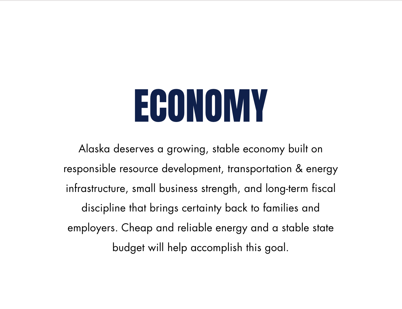 Alaska faces a fiscal cliff, an energy crisis, and a collapsing education system - all at the hands of so-called Republican leadership. I'm not sure vague and aloof work here if you're trying to sell yourself as the reasonable candidate, mostly because we need a governor who has actually thought about these problems for longer than it takes to type a blurb on a website template.
