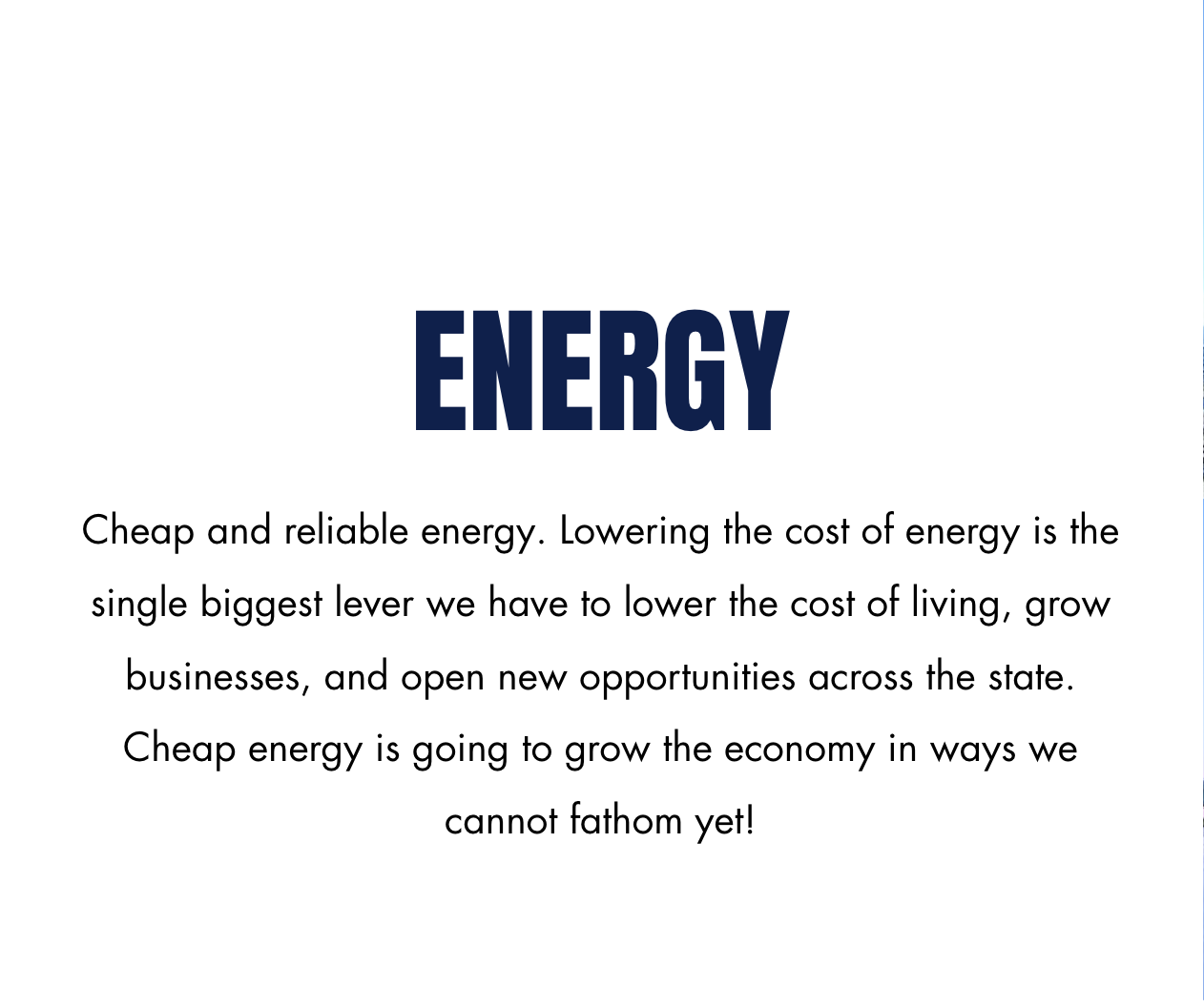 Note the use of "fathom." He does not tell us how he plans to lower energy costs. He does not mention natural gas pipelines, renewables, grid modernization, or subsidies. He just promises that once the cheap energy arrives via some magical mechanism he refuses to name, the economic benefits will be beyond human comprehension.
