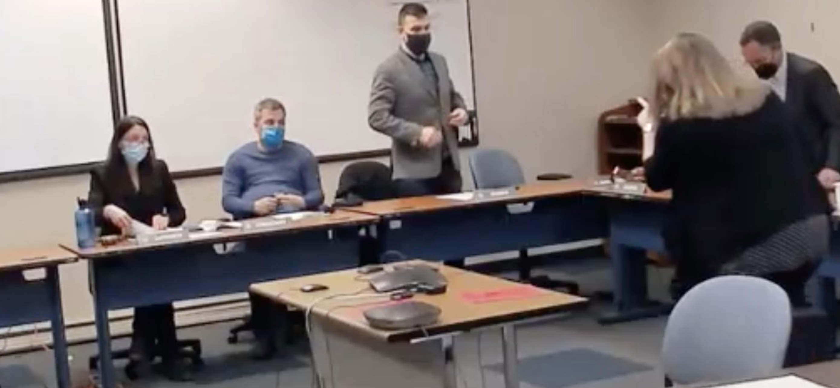After Constant concluded his comments, Assembly Chair LaFrance adjourned the special meeting, and that's when the city's live feed captured approximately 6 seconds showing Municipal Manager Amy Demboski rushing down the center of the room, wildly pointing her finger at a dumbfounded Constant repeatedly saying, "That's bullshit, it's bullshit," as Constant responded, "It's true, it's true."
