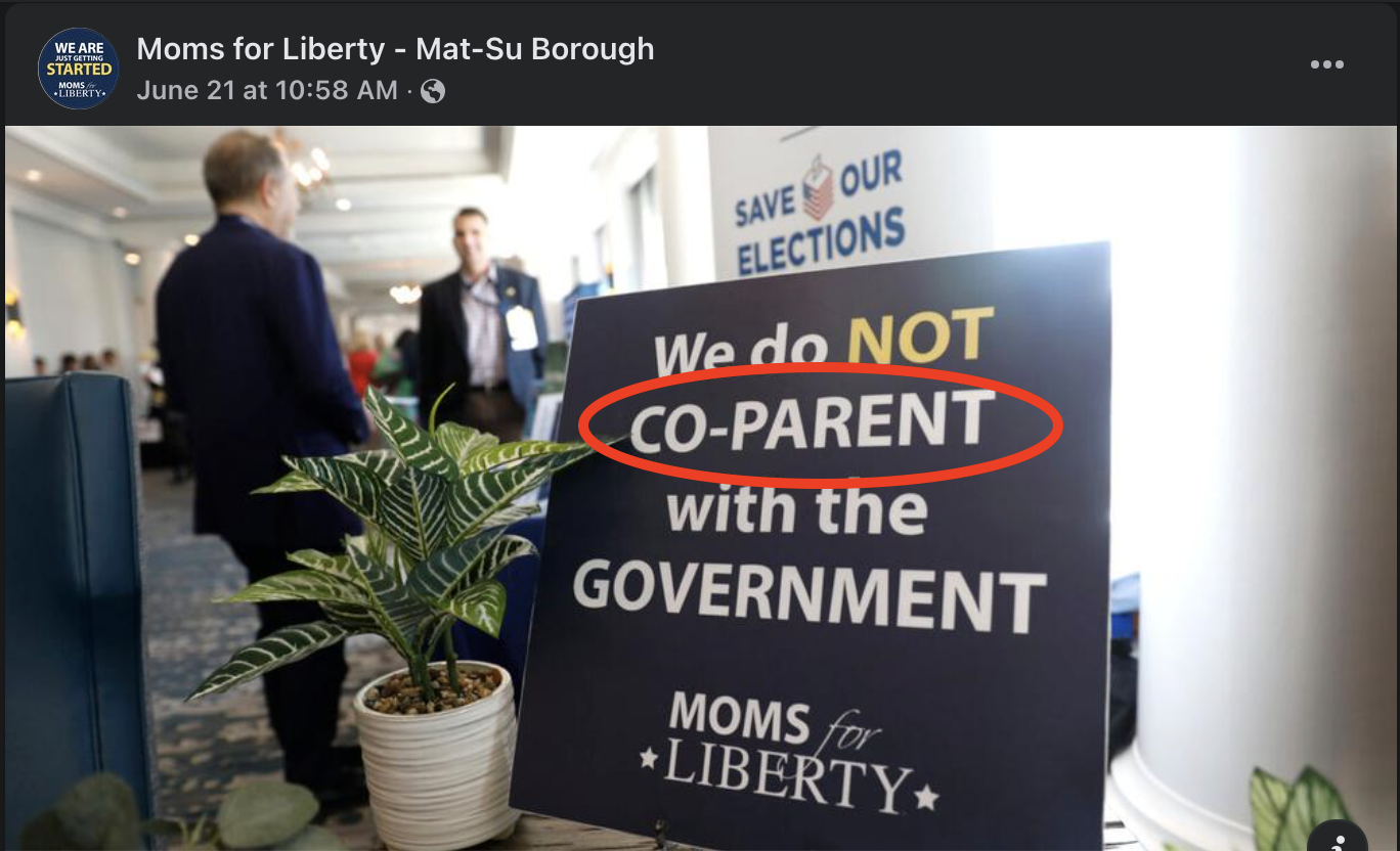 As is often the case with right-wing organizations and groups who babble that educational institutions lack transparency, the Moms for Liberty - Mat-Su Facebook group remains private. They do, however, maintain a public social club page dedicated to sharing Moms for Liberty talking points. Curiously enough, or maybe not, this page avoids shedding any light on their actual activities in Alaska.
