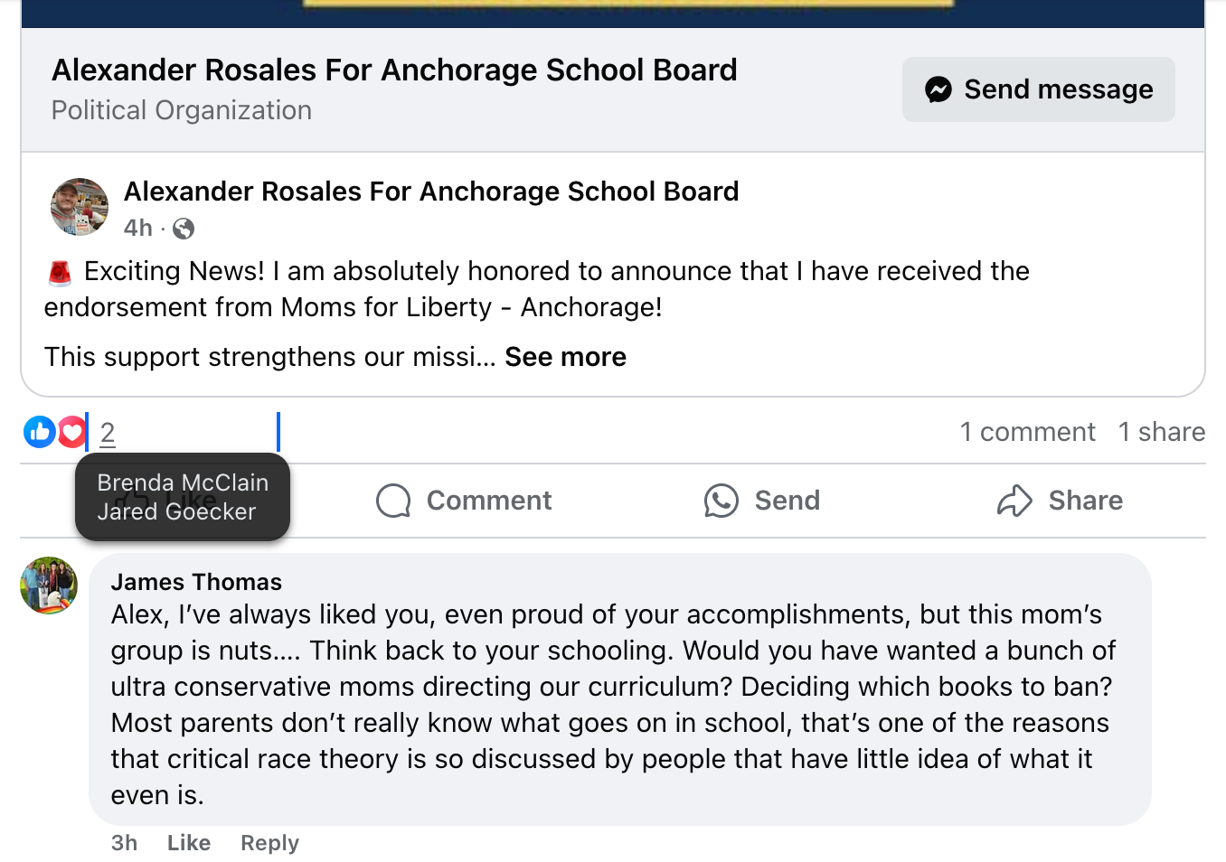 The fringe right threw a happy parade when the Anchorage chapter of Moms for Liberty launched a little over two years ago, trumpeted breathlessly by far-right figures Rep. Jamie Allard, Assembly Member Jared Gocker, Must Read Alaska, the Mat-Su-based Alaska Watchman, and the anti-LGBTQ hate group Alaska Family Council.